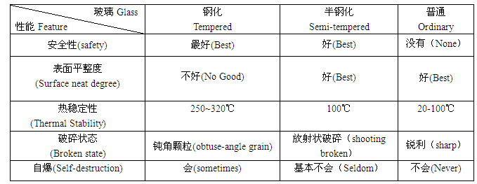 基本概念: 钢化玻璃是将普通玻璃进行技术加工处理后,使玻璃机械强度比普通玻璃增强,全钢化玻璃增强3--5倍,半钢化玻璃增强2.5倍。破碎后呈颗粒状碎片不易伤人,是安全玻璃。 加工规格: 最大2440 mm×8000 mm、最小100 mm×100 mm、厚度3mm--25 mm 钢化标准: GB/T9963-1998《钢化玻璃》中国标准BS6206英国标准